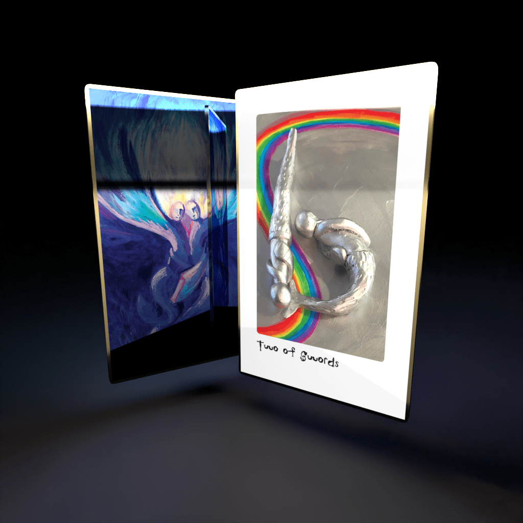 Luna and Kai face decisions and inner conflicts. The Two of Swords represents the need for balance and careful consideration. Their love helps them navigate through difficult choices with wisdom and poise.
