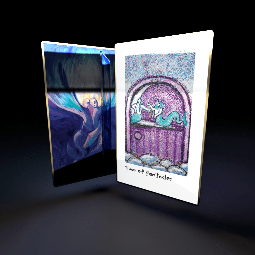 Luna and Kai maintain balance and adaptability. The Two of Pentacles represents juggling priorities and resources. Together, they navigate life’s challenges with grace and harmony.