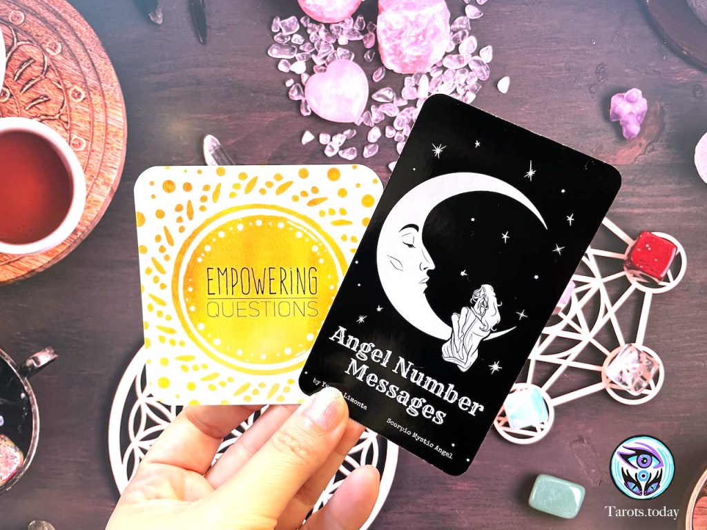 The best oracle deck is the one you choose to use. A comparison review might help you decide between the Empowering Questions vs Angel Number Messages oracle decks. Both of these oracle decks feature text messages as the primary graphic and do not include any guidebooks. The cards tell the messages on each card so a guidebook is not needed. I think these two pair so nicely side by side and the question deck pairs nicely with any deck. Empowering Questions is available on Amazon as a commercially produced deck and Angel Number Messages is on Etsy from an independent artist.