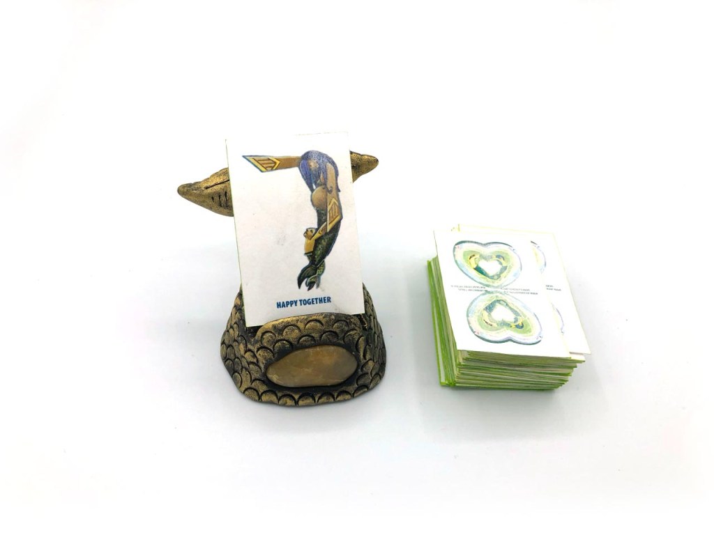 The best oracle deck is the one you choose to use. A comparison review might help you decide between the Song of My Heart and Mini Mermaid Relationships oracle decks. Both of these oracle decks feature original designs from artists who self-publish. The min mermaid relationship cards are from Foreverbird Studio, so this post is a bit of self-promotion. I combined these two because they both have a strong design theme. In the Song of My Heart, almost every image portrays a woman. In the Mermaid Relationship cards, nearly every card is a mermaid couple letter form. Both of these decks include short affirmation-like statements. Both of these decks come with digital downloads.