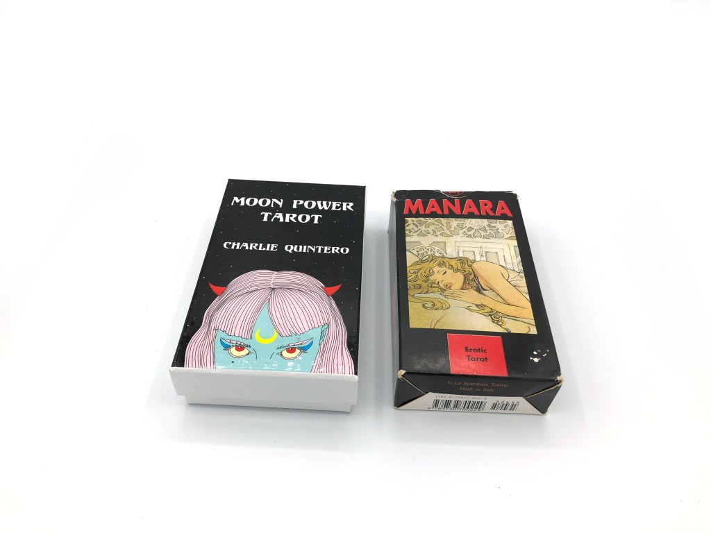The best tarot deck is the one you choose to use. A comparison review might help you decide between Moon Power Tarot and Manara Tarot. Both of these decks feature edgy artwork that is exciting and sexual in nature. I selected cards for the video that give a sense of the imagery but leave it to your imagination. Moon Power has a darker or gothic and modern city vibe that is unique to the artist. Manara is also an artist with a unique sensibility to the imagery and the deck is mass-produced for a wider audience appeal.