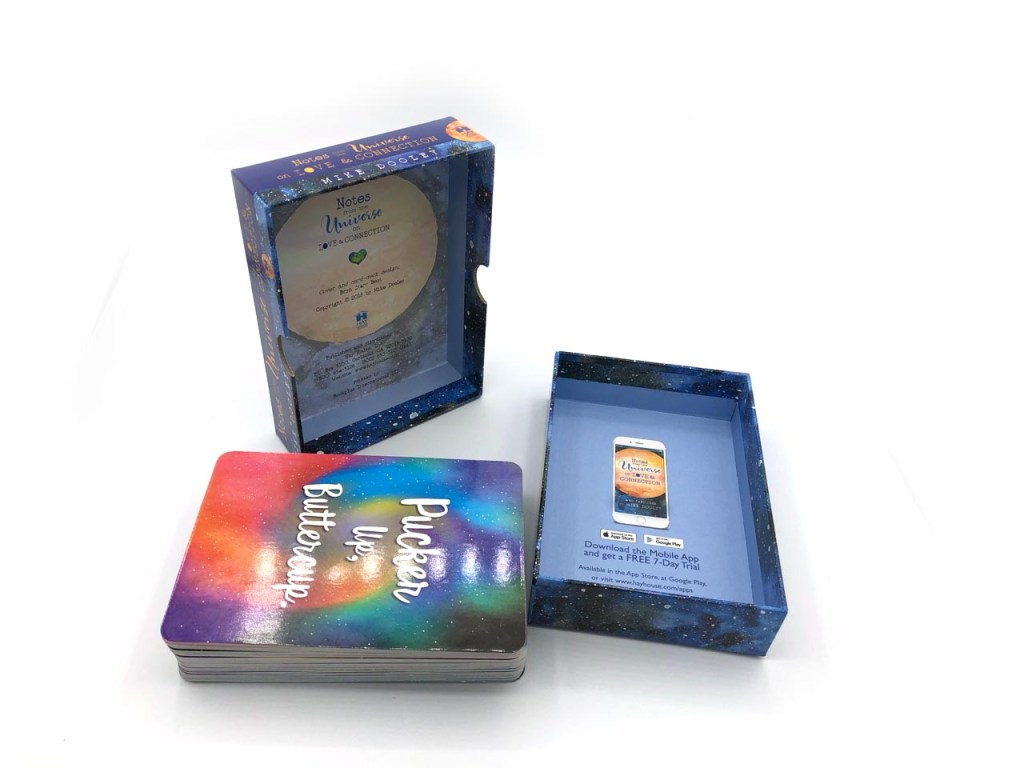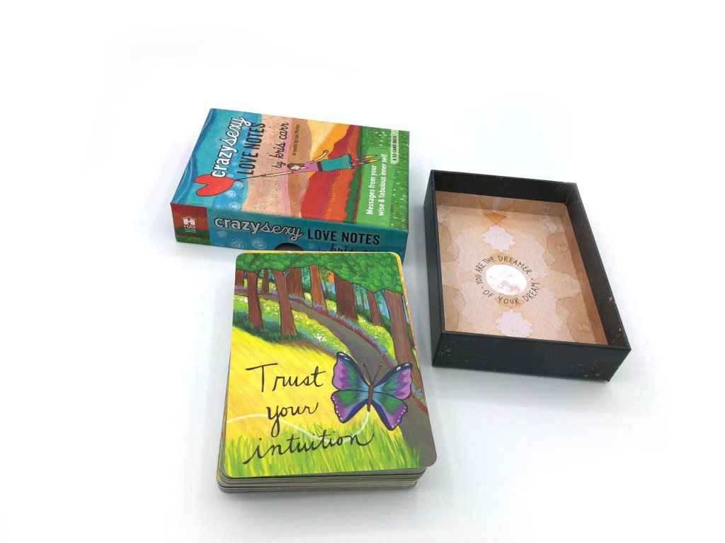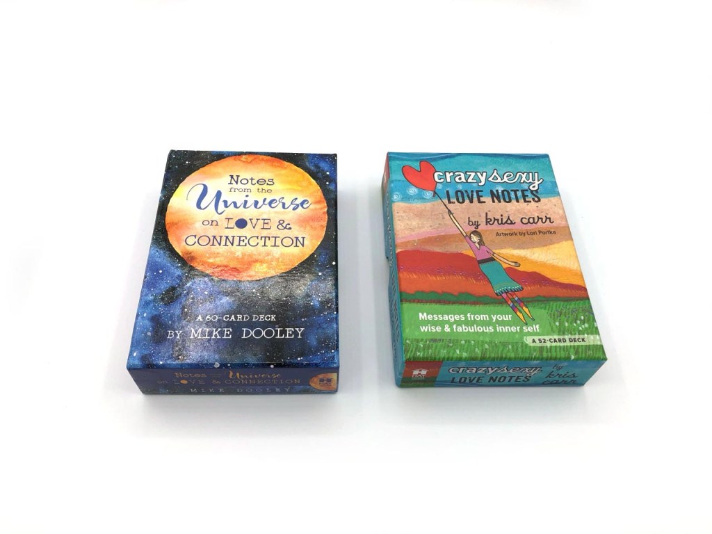 The best oracle deck is the one you choose to use. A comparison review might help you decide between Notes from the Universe and crazy sexy love notes oracles. Both of these oracle decks have positive messages to warm your heart. Both decks have messages directly on the cards so that no guidebook is required—notes from the Universe on Love and Connection mostly text front and back with colors and patterns. The crazy sexy love notes oracle includes images of one side that are illustrated to match the saying. Both decks are all positive vibes that uplift the spirit, come from HayHouse publishing, which also offers phone app versions of the cards.