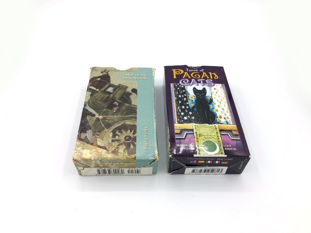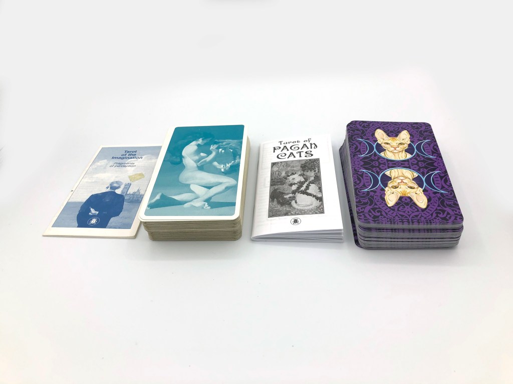 The best tarot deck is the one you choose to use. A comparison review might help you decide between the Tarot of the Imagination and Tarot of Pagan Cats. The quick video review will cover the author, artist, publisher, packaging, card, booklet, artwork, and other miscellaneous details. The decks featured in these reviews are from a collection that spans over 20 years. When researching what deck is best for you, please know that each edition can be slightly different. See below the video for a link to help you find official sites.