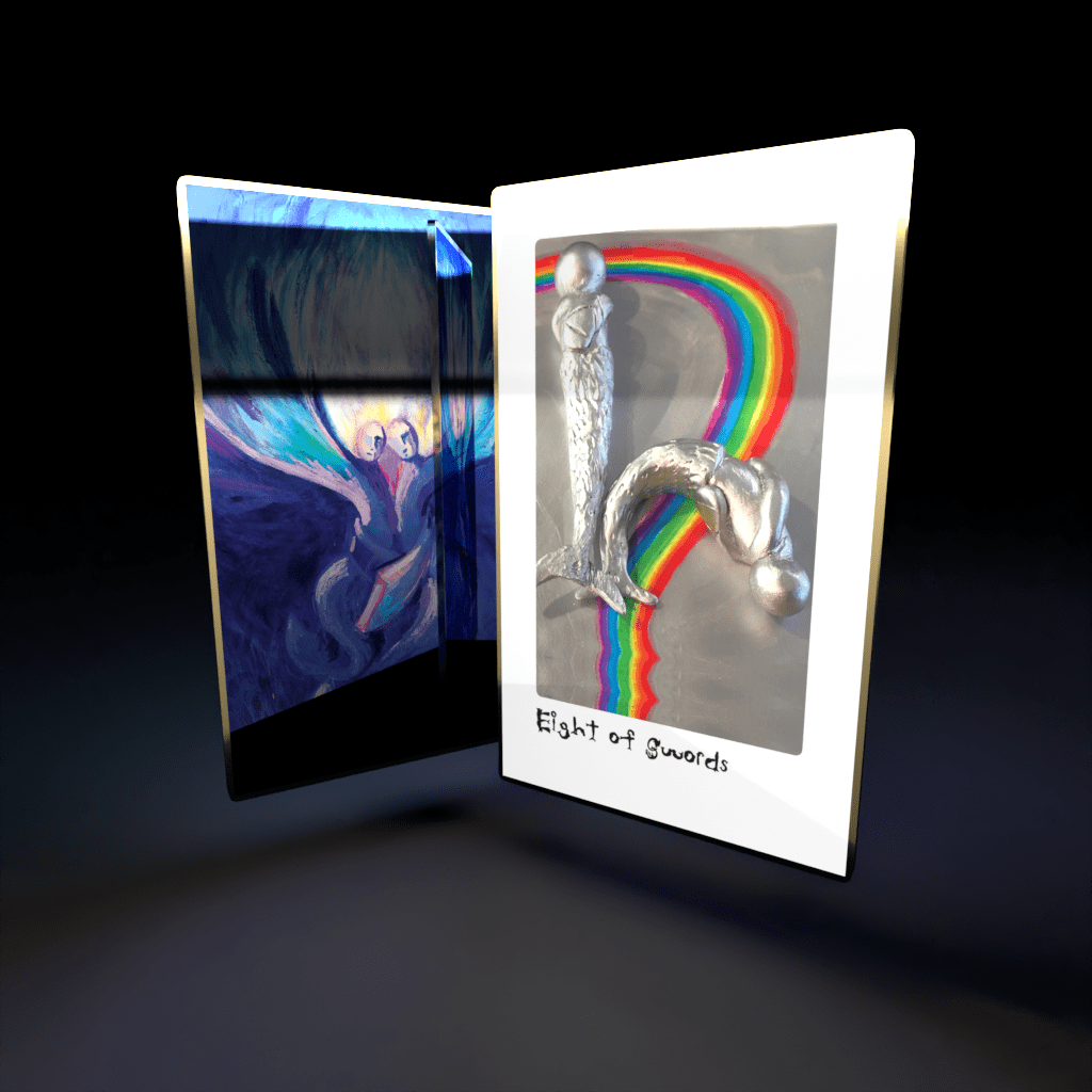 Selene and Triton face feelings of restriction and limitation. The Eight of Swords represents the need to break free from mental constraints. Together, they encourage each other to challenge self-imposed barriers.
