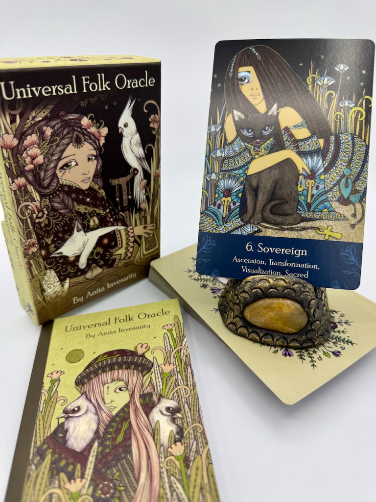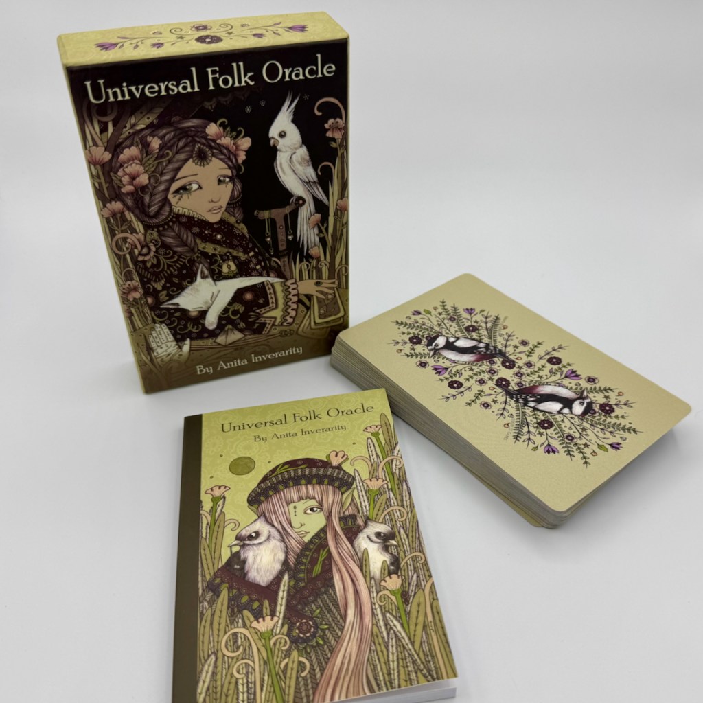🌟 Universal Folk Oracle – Folkloric figures and a guidebook full of meanings, affirmations, and crystal pairings. The characters feel like they belong to their own mysterious world!
