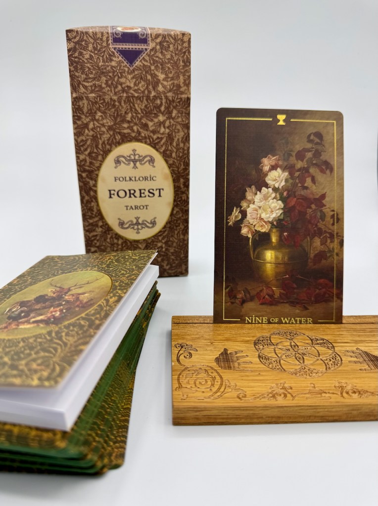 Today I’m thrilled to welcome the Folkloric Forest Tarot to my collection! Inspired by Finnish and Northern European legends, this deck features antique artwork that brings old-world magic to every card. With gold accents and a soft green edge, it’s not only beautiful but also offers one of the most satisfying shuffling experiences I’ve ever had.