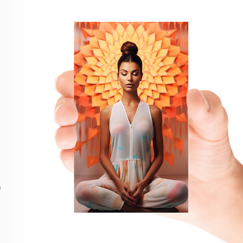 | Radiant Orange Tones | Vitality and creativity. The orange hues behind the figure activate the sacral center, inviting growth, creative expression, and empowered action. |